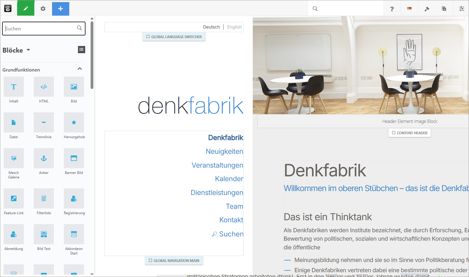ConcreteCMS steht für eine moderne, praxisnahe Art der Website-Bearbeitung. Inhalte werden direkt auf der Seite angepasst – dort, wo sie erscheinen. Das macht das System besonders intuitiv und reduziert den Schulungsaufwand auf ein Minimum. Redakteurinnen und Redakteure arbeiten visuell, effizient und ohne technische Hürden.