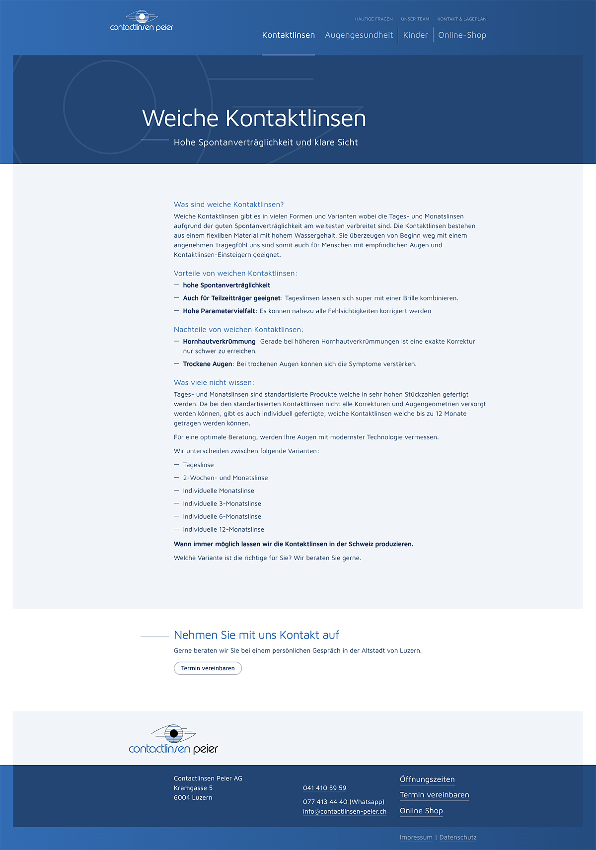 Sie sind die Experten für Kontaktlinsen mitten in der Altstadt von Luzern. Nun folgte mit dem Inhaberwechsel auch eine Modernisierung der Website. Frische Portraits in der Praxis sorgen ebenfalls für neue Blicke.