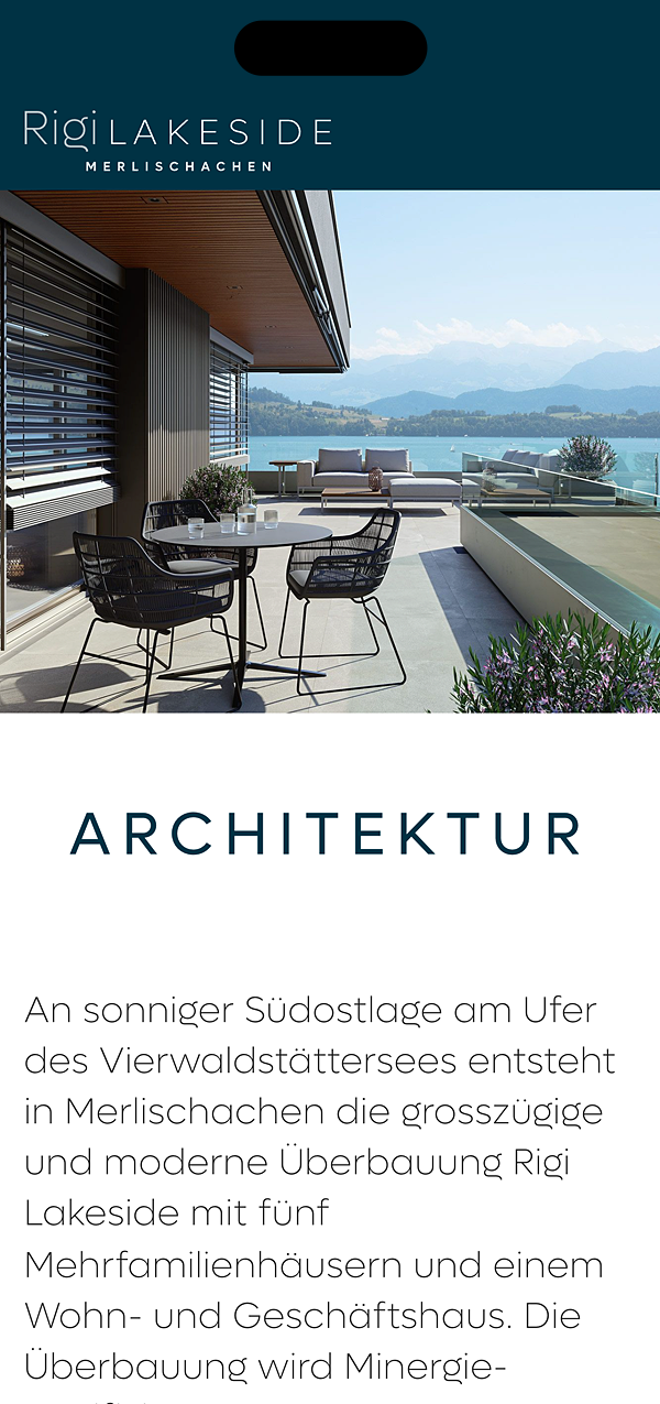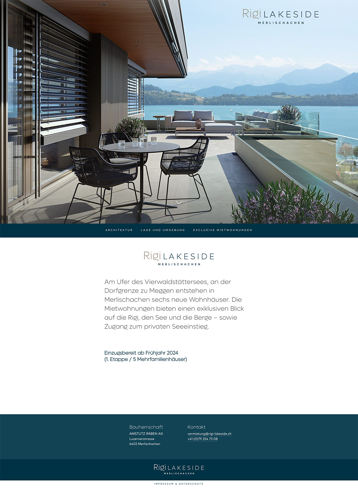 Rigi Lakeside bietet Wohnraum mit exklusiven Blicken auf See und Berge. Elegant und schlicht präsentiert sich der Auftritt der modernen Überbauung.