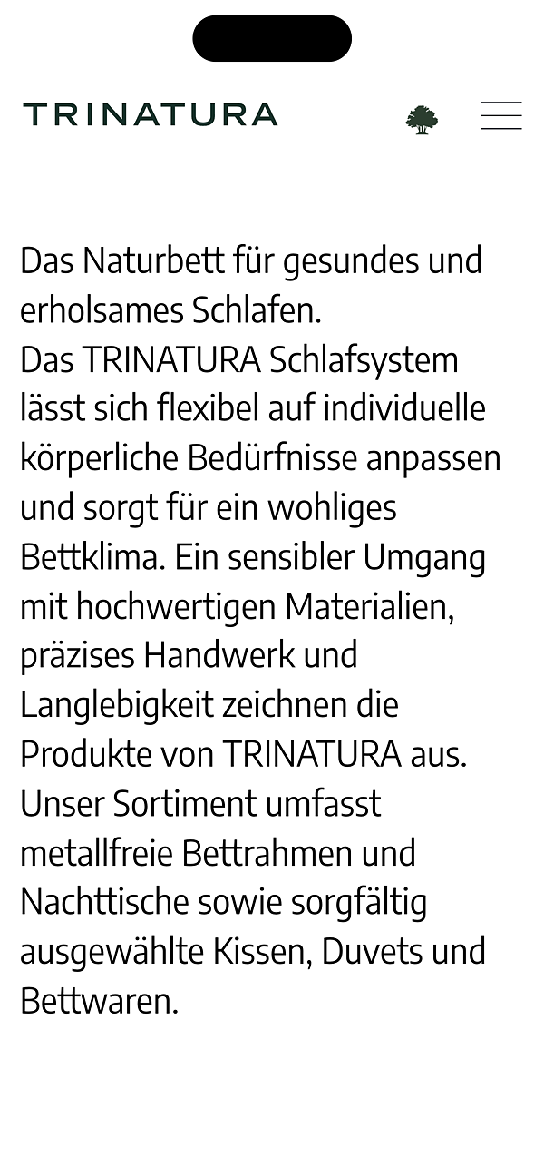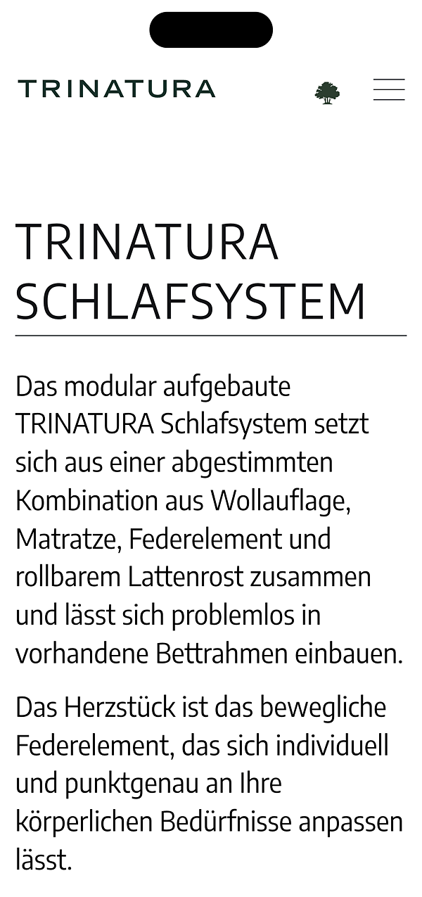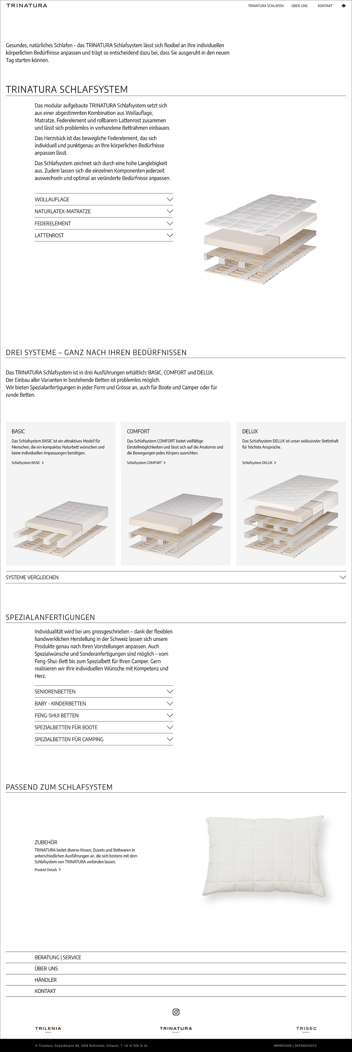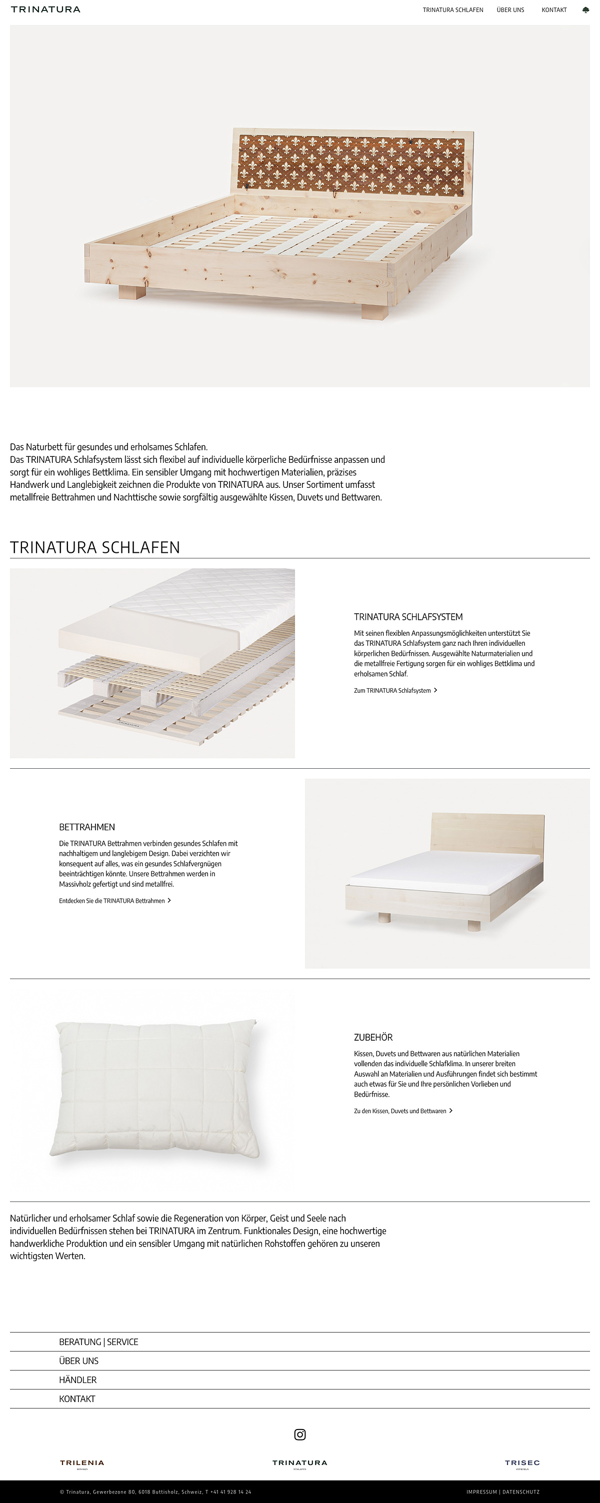 Trinatura aus Buttisholz produziert individuelle Naturbetten für gesunden und erholsamen Schlaf. Genau so hochwertig und stilvoll präsentiert sich die Website.
