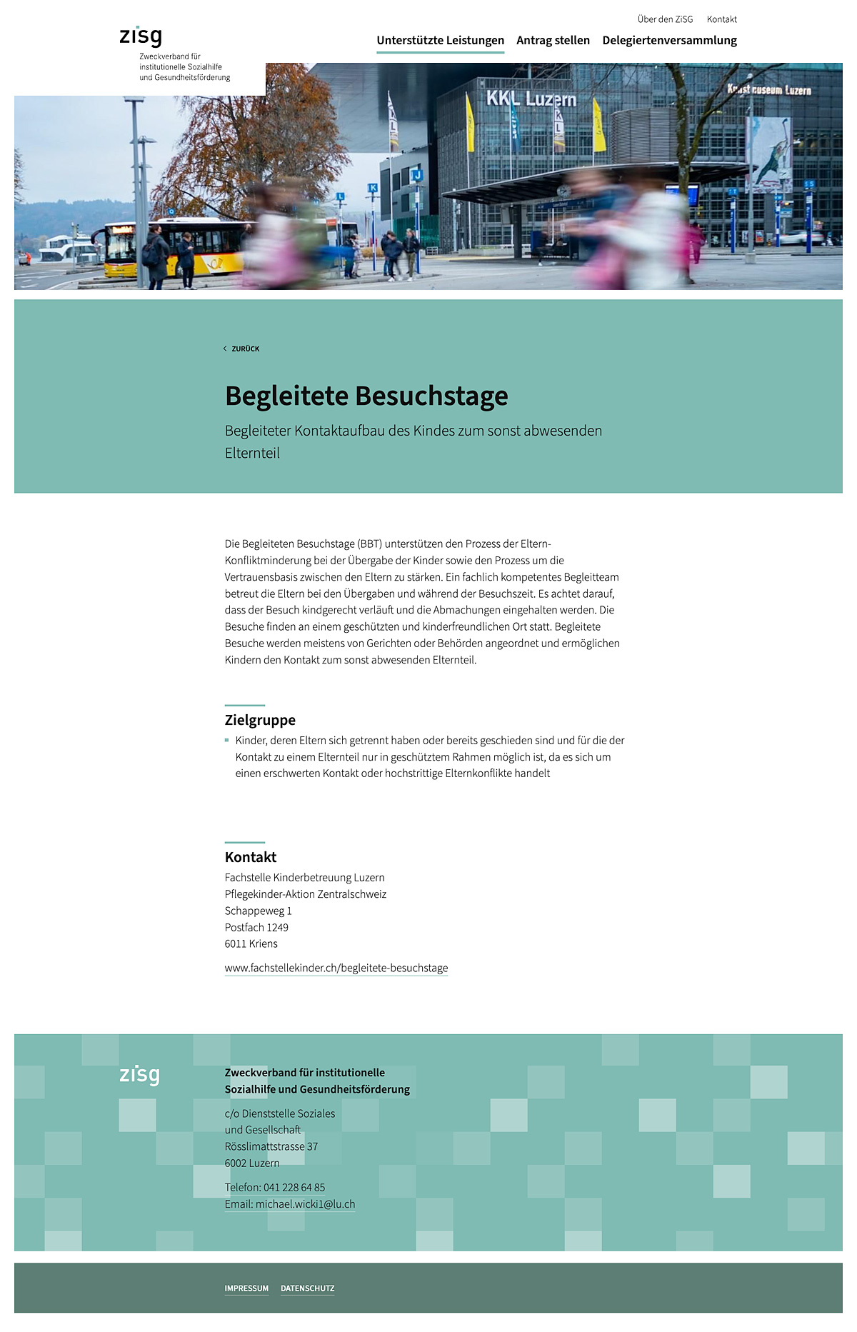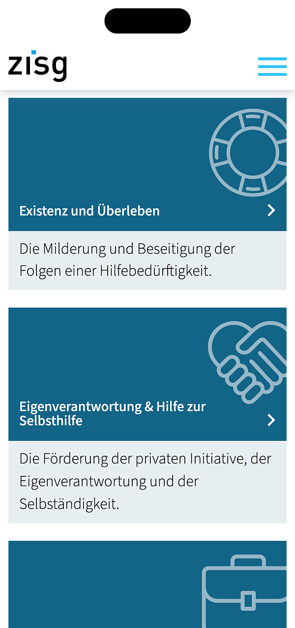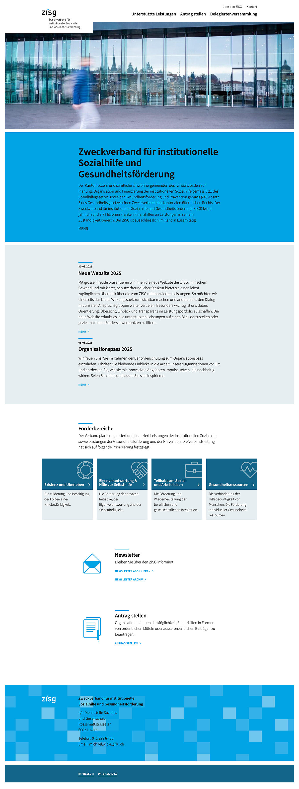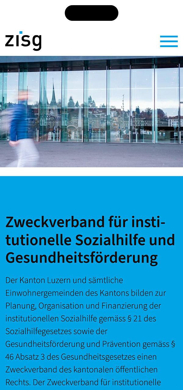 Der Zweckverband für institutionelle Sozialhilfe ZiSG unterstützt 32 Leistungen im Gesundheits- und Sozialbereich. Und wir unterstützten den ZISG bei der Gestaltung, Strukturierung und Umsetzung der Website.